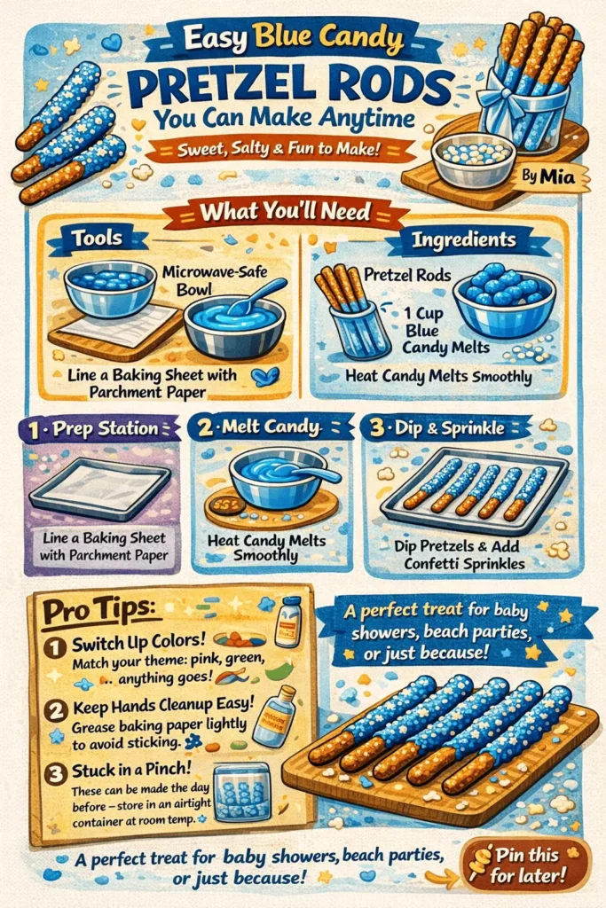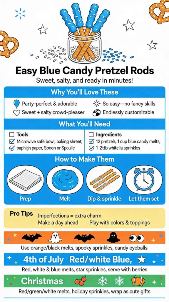 Looking for a sweet-and-salty treat that feels special without stressing you out? These Easy Blue Candy Pretzel Rods are here for you. They’re simple, quick, and look like something you picked up from a fancy bakery—even though they come together in just a few minutes in your own kitchen.